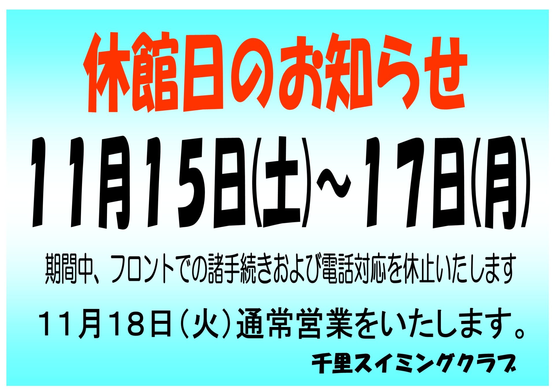 休館日のお知らせ
